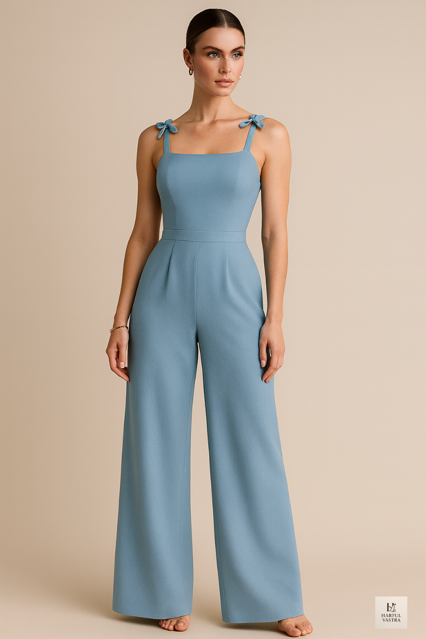 - Elegant square neckline with feminine bow-tie shoulder straps