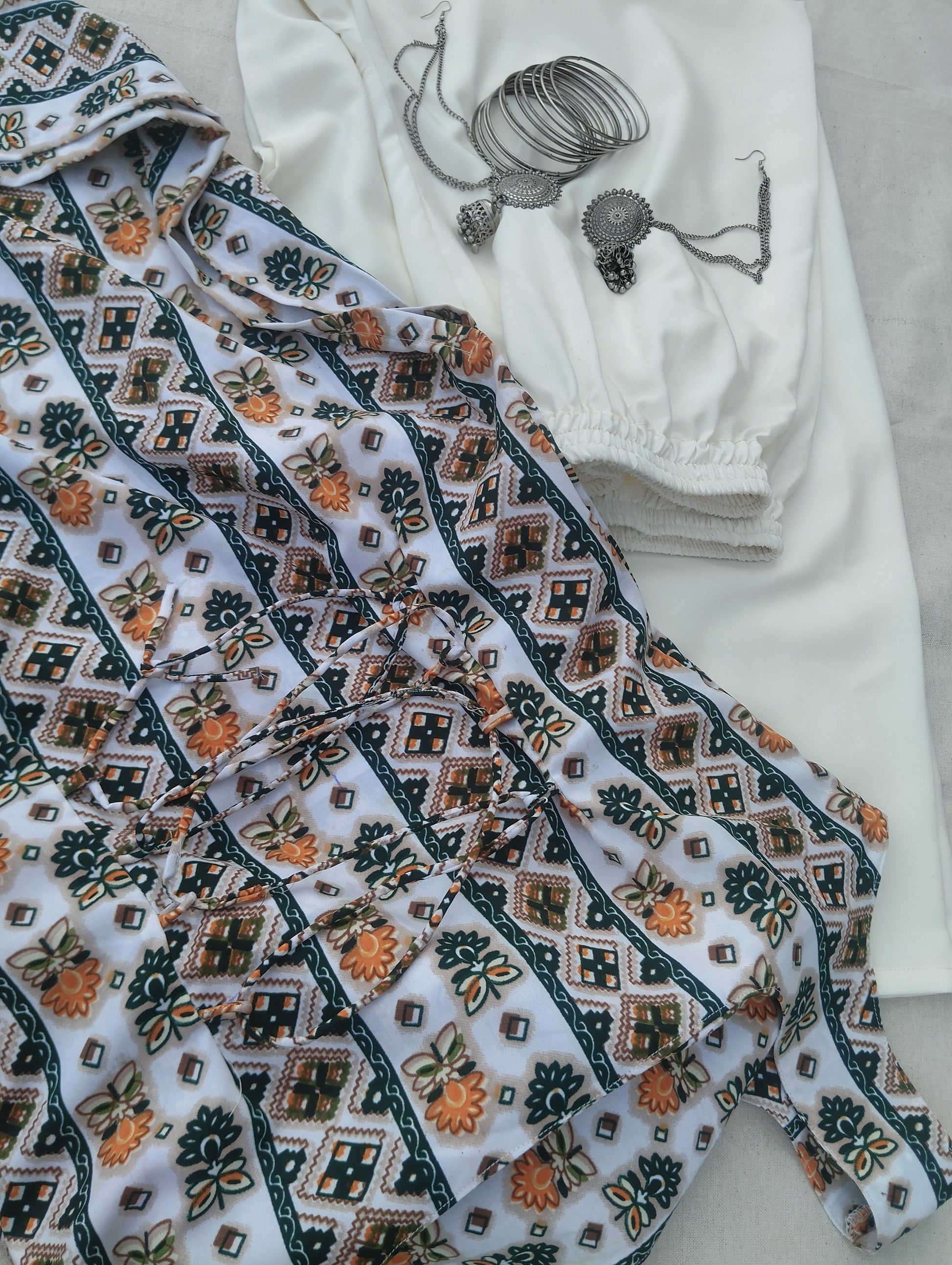 Fabric: Printed crepe and solid crepe